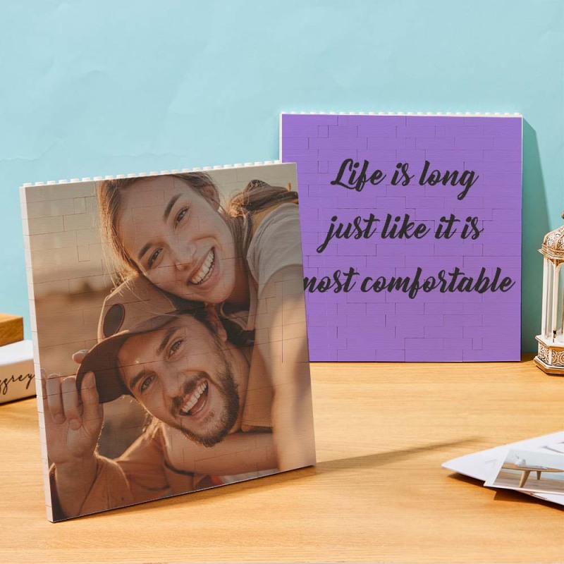 Personalized Building Brick Square Photo Block Music Code Custom Text Frame
