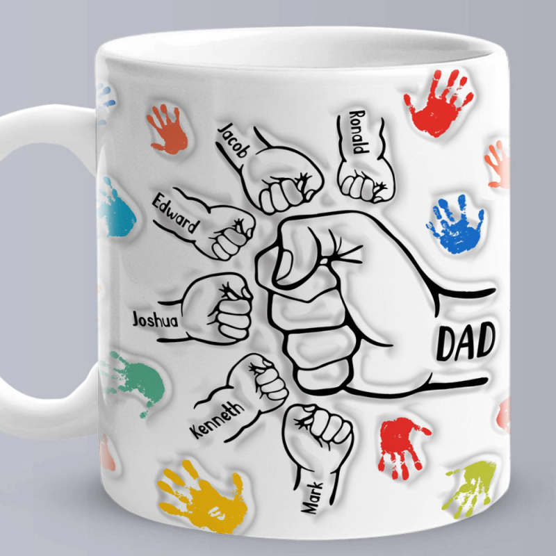 Personalized Custom Names 3D Inflated Effect Printed Mug Gift for Dad Grandpa