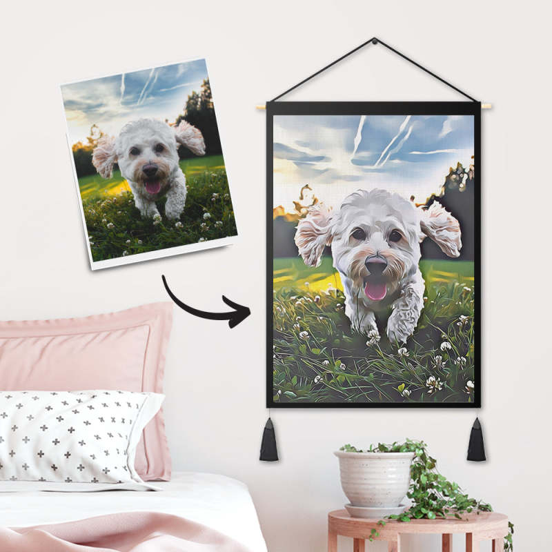 Personalised Custom Puppy Photo Tapestry - Wall Decor Hanging Fabric Painting Art Portrait Hanger Frame Poster