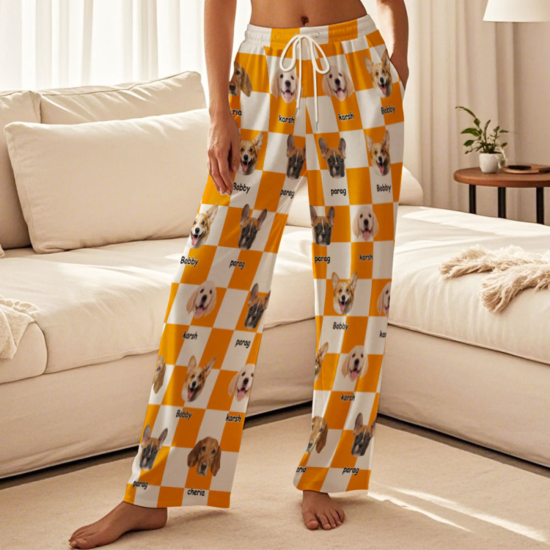 Personalized Dog Cat Face Photo Multicolor Plaid Name Pajama Pants Birthday Christmas Gift for Women Men Pet Lovers