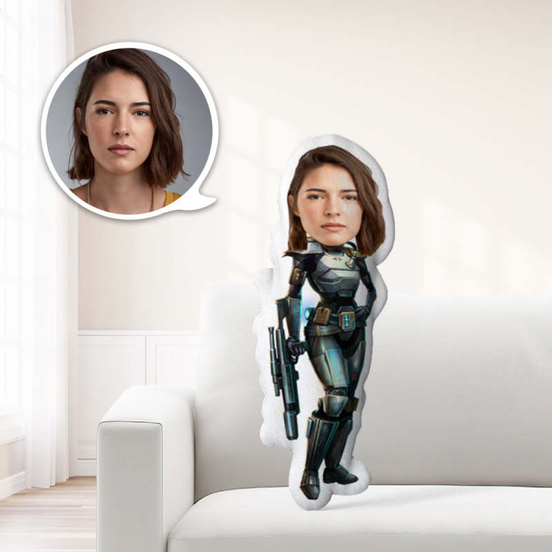 Personalized Face Minime Throw Pillow Custom Star Wars Bounty Hunter Minime Throw Pillow