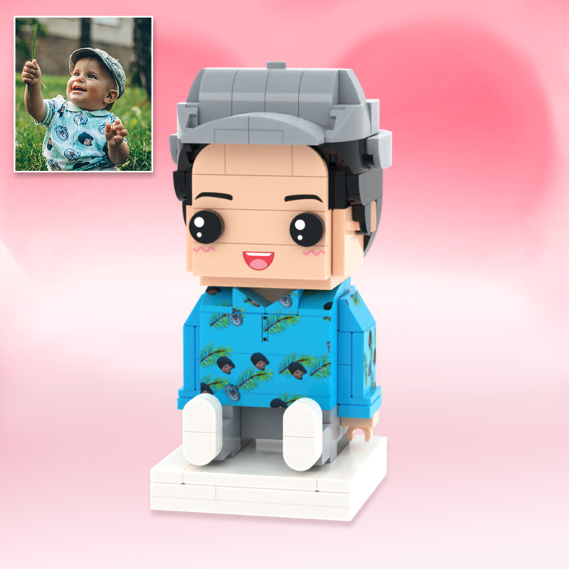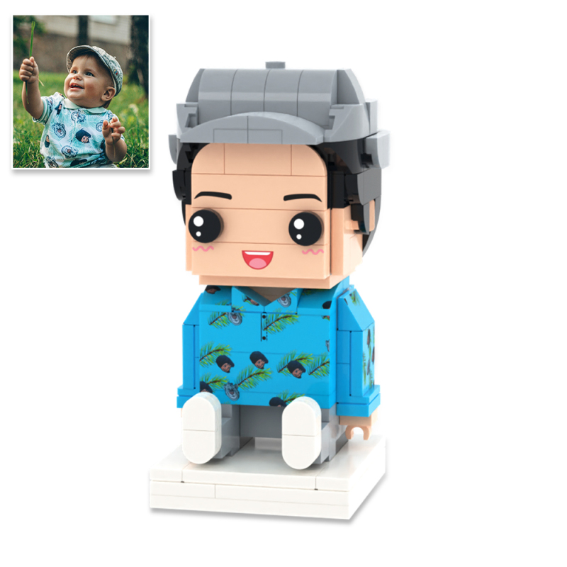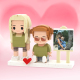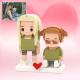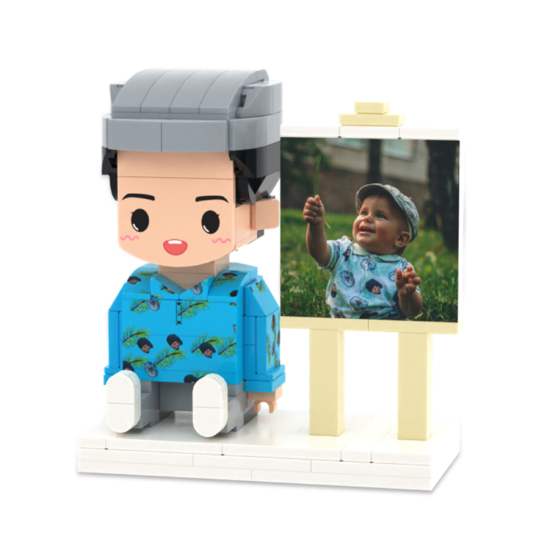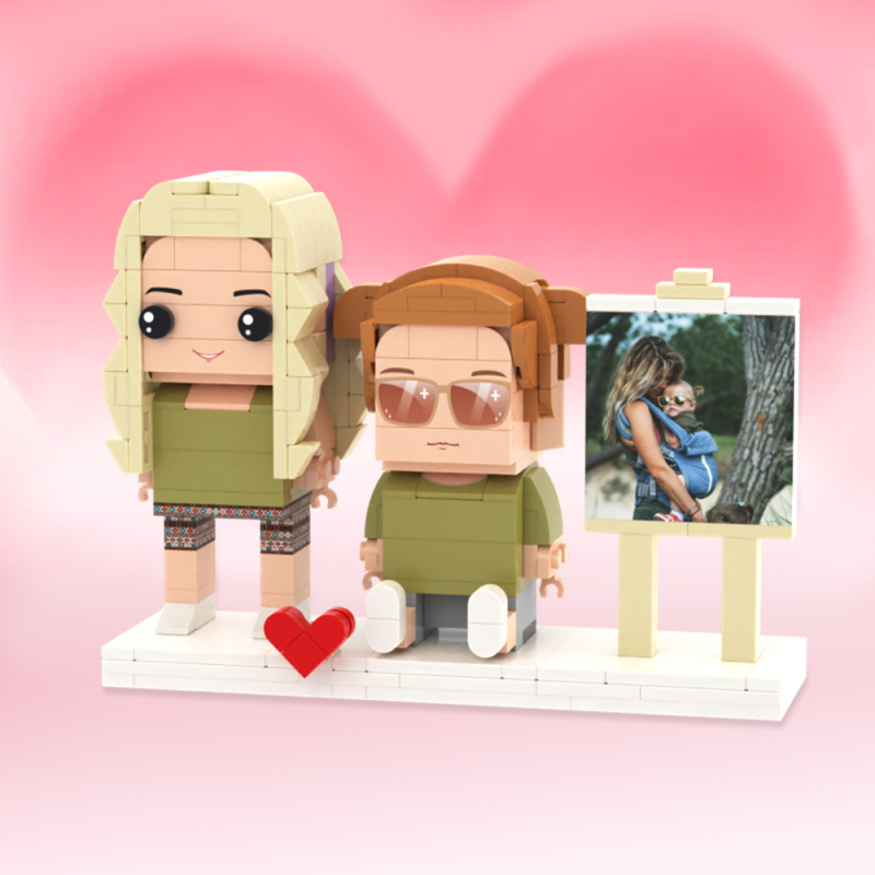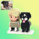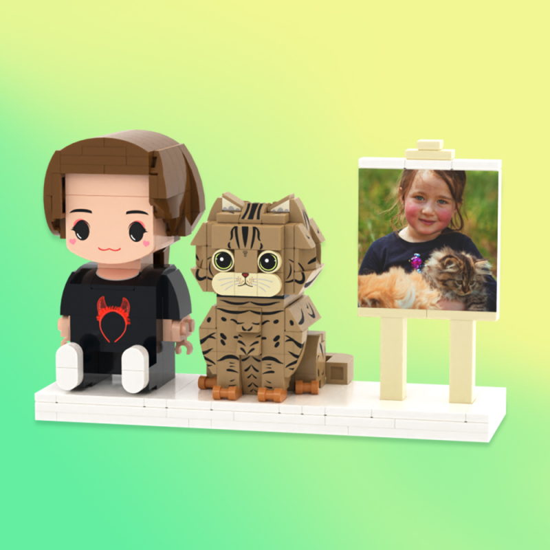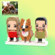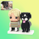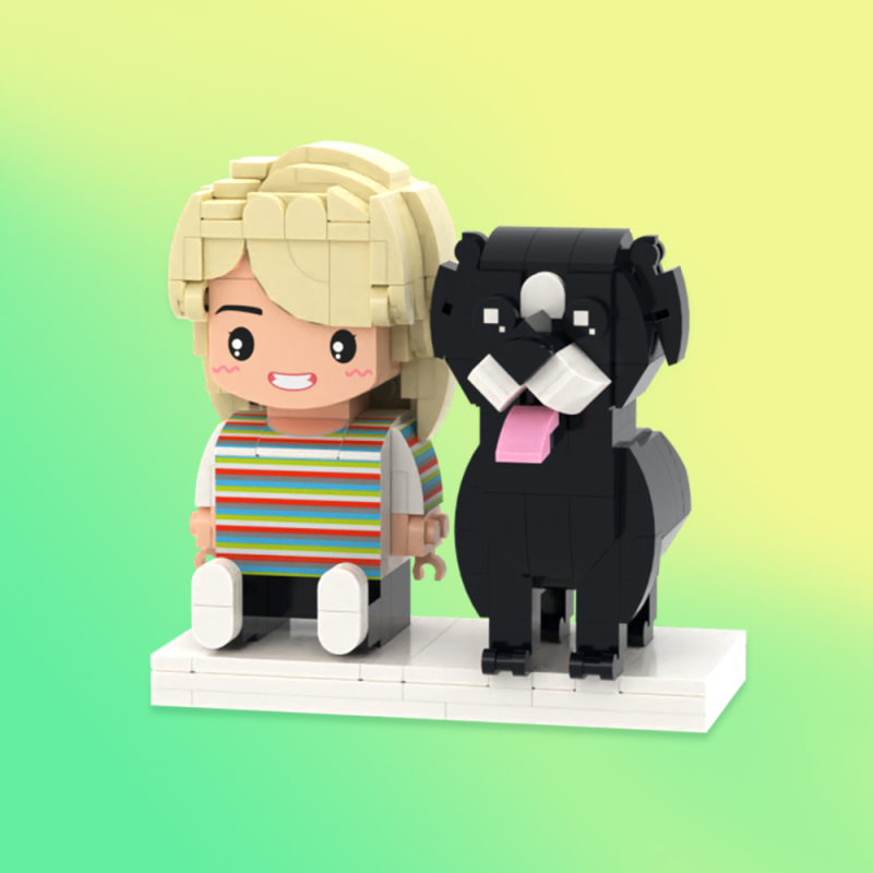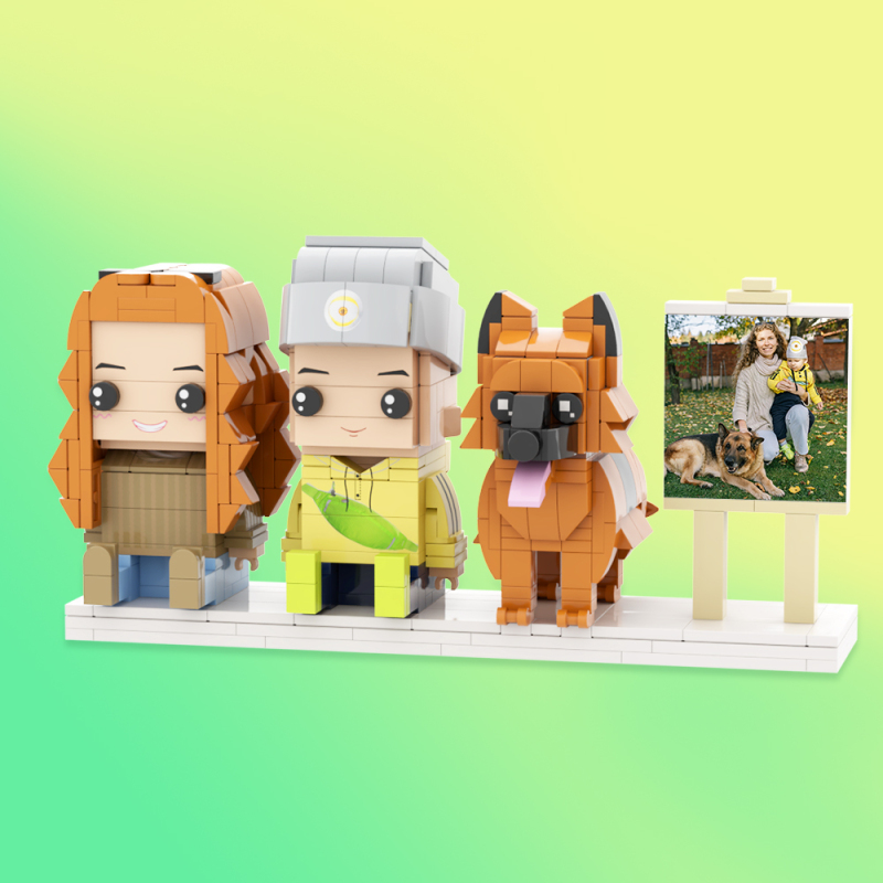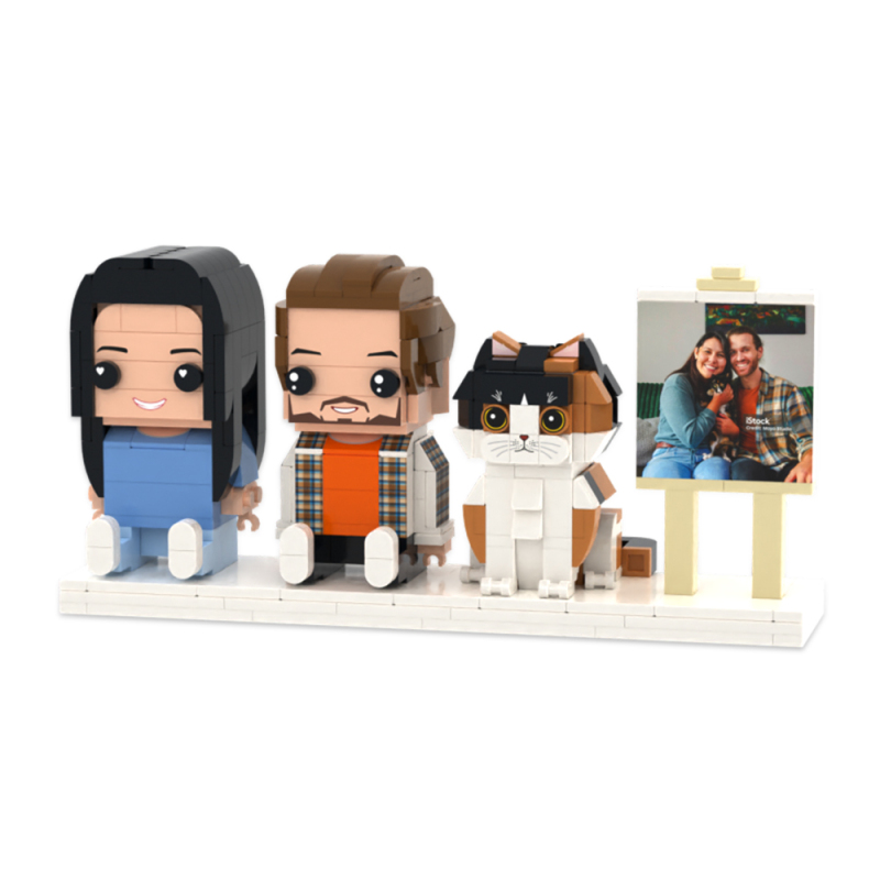 Personalized Full Body 2 People with Dog Brick Figures Custom Sitting Brick Figures
