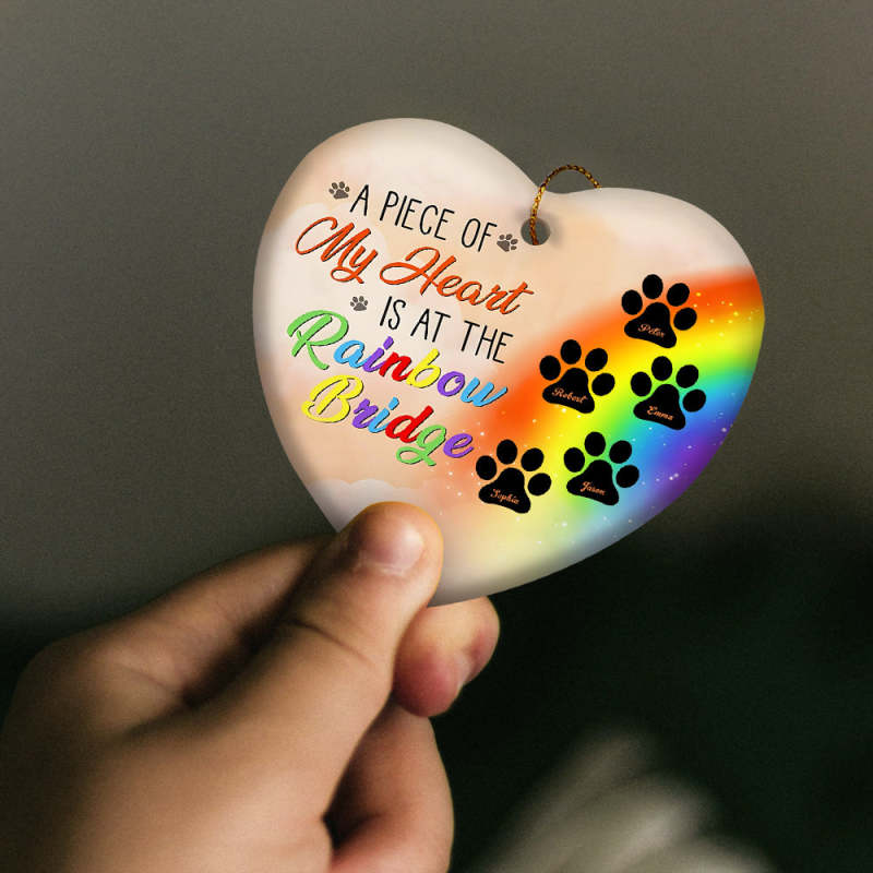 Personalized Heart Pet Ornament A Piece Of My Heart Is At The Rainbow Bridge Ornament for Pet Memorial Gift