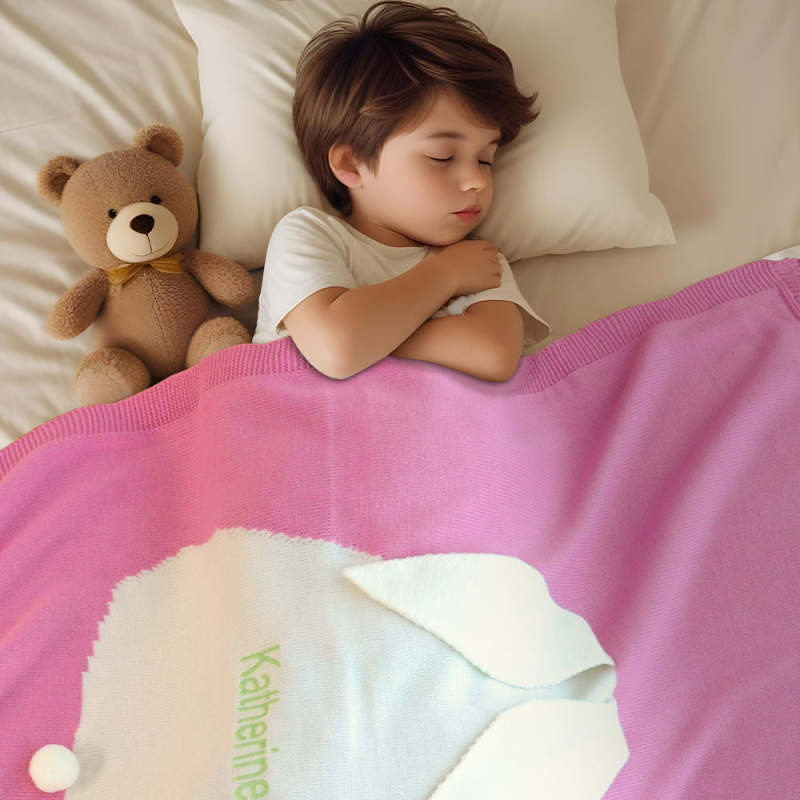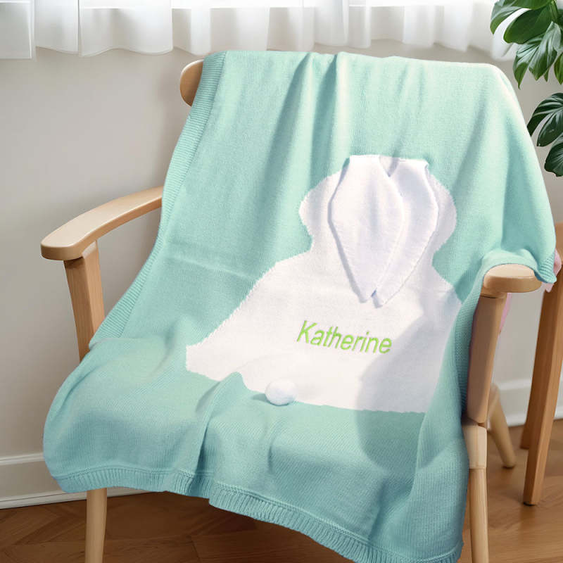 Personalized Knitted Blanket Bunny Blanket with Embroidered Name Gift for Baby