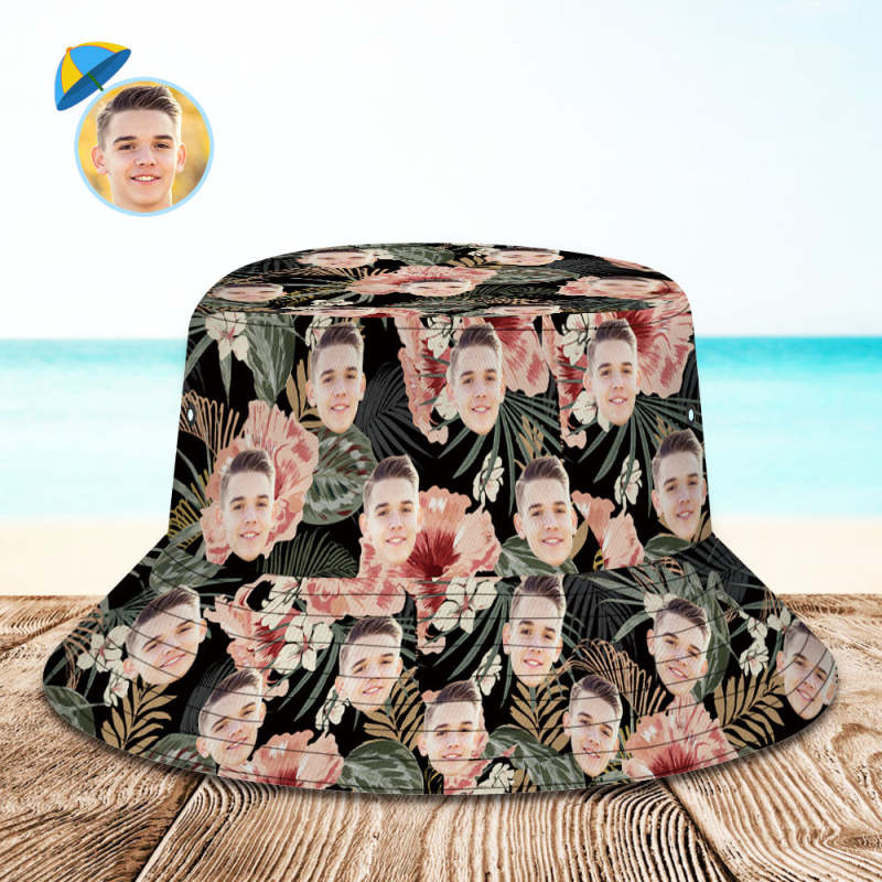 Personalized Photo Tropical Flower Print Hawaiian Fisherman Hat Bucket Hat