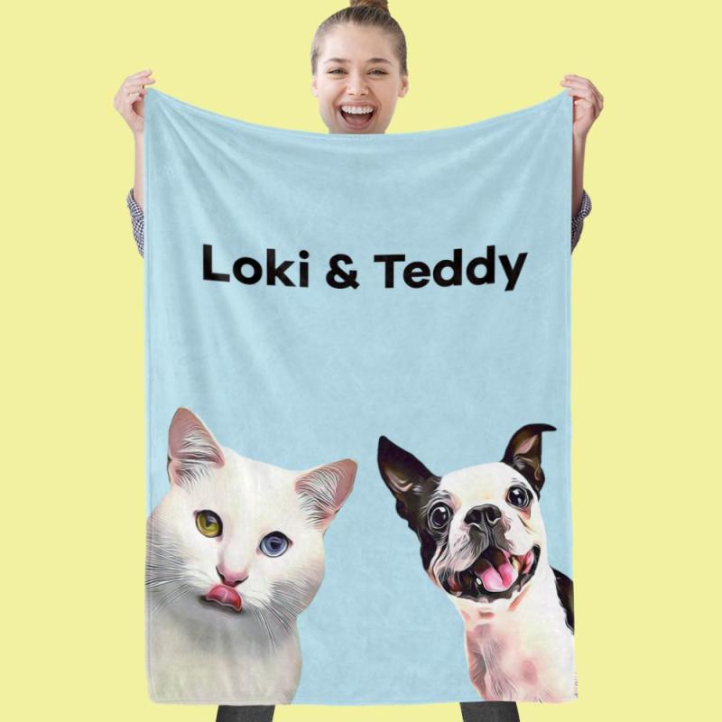 Pets Art Portrait Blanket Pet Sympathy Gifts Custom Pet Blanket Personalized Photo Blanket Pet Picture Blanket Gifts For Pet Lovers