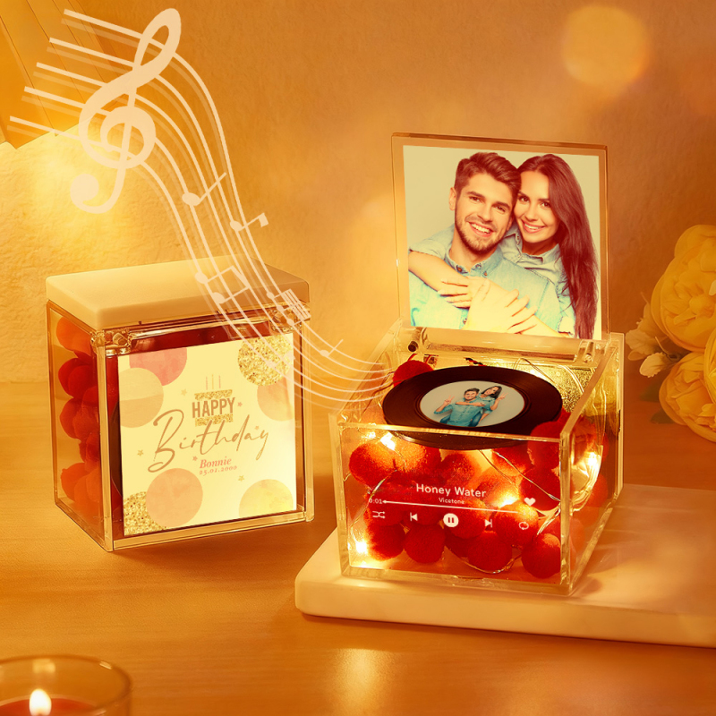 Premium Mini Music Record Auto-Music Player Custom Photo with Light Personalized Music Acrylic Box