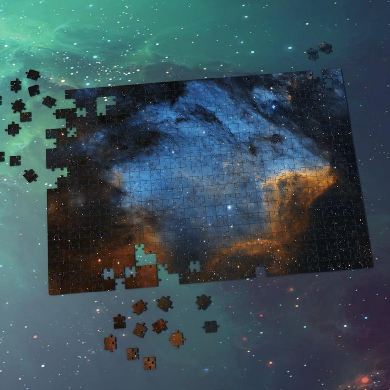 Space Themed Jigsaw Puzzle Starry Sky For Adults And Kids - Blue And Earthy Yellow Nebula