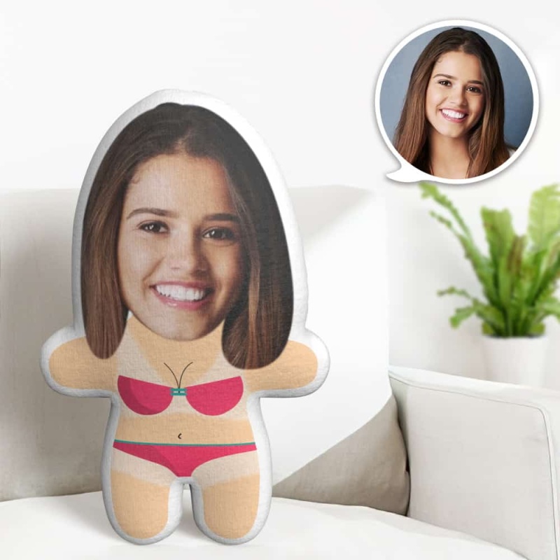 Sunburnt Woman Minime Throw Pillow Custom Face Pillow Personalized Cute Minime Pillow Gifts
