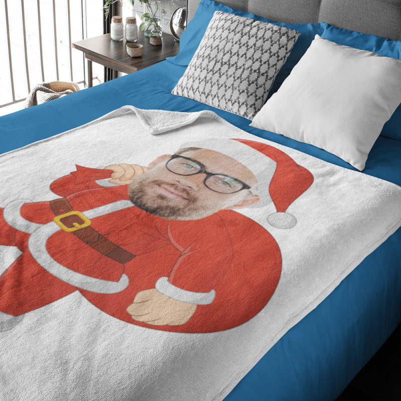 Unique Christmas Blanket Gifts Photo Blanket Face Blanket Custom Blanket Personalized Santa Claus in A Red Bag with Gifts