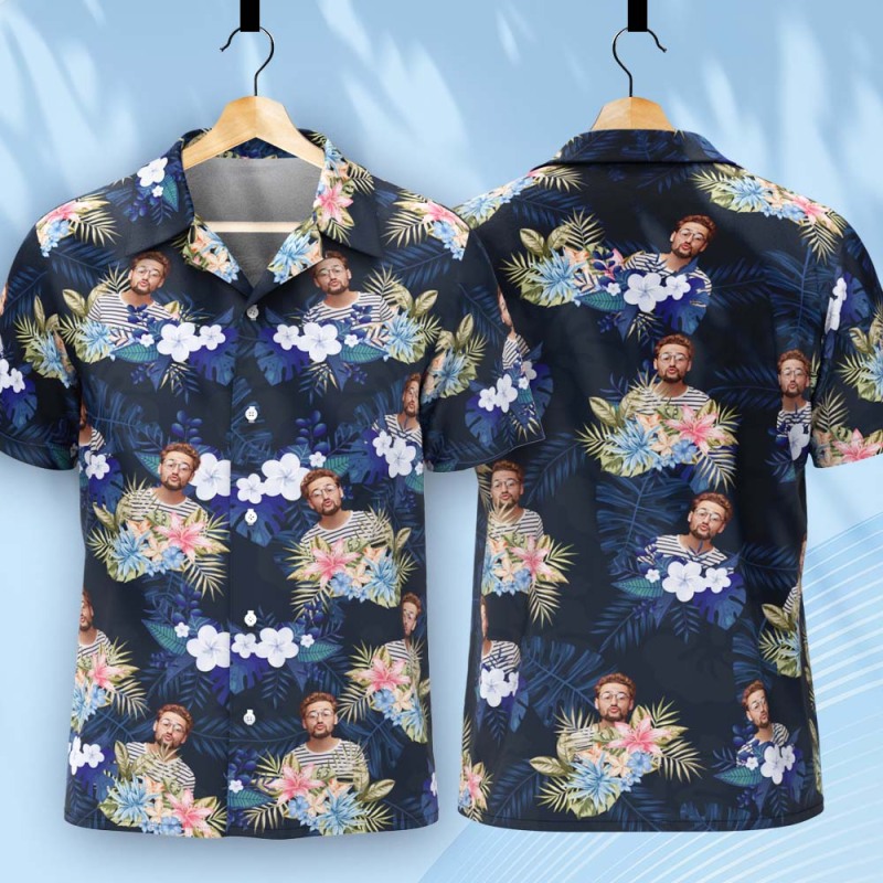 Vintage Custom Men Hawaiian Shirts With Hawaiian Style Pattern Photo Beach Shirts For Him