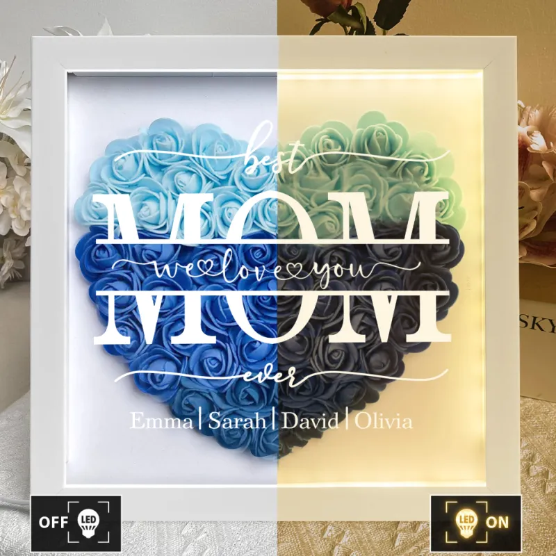 We Love You Mom - Personalised Flower Shadow Box With LED Light
