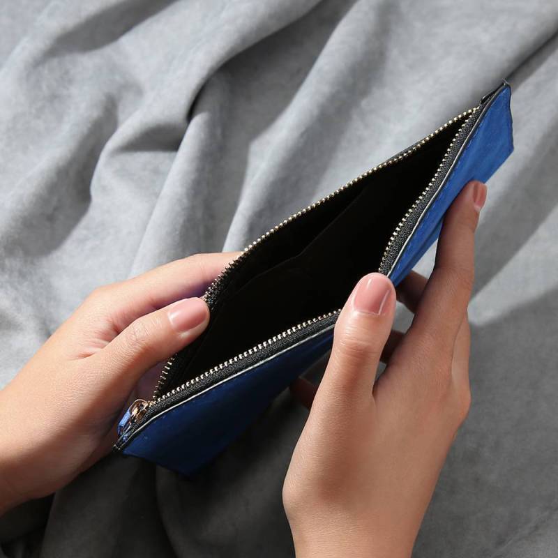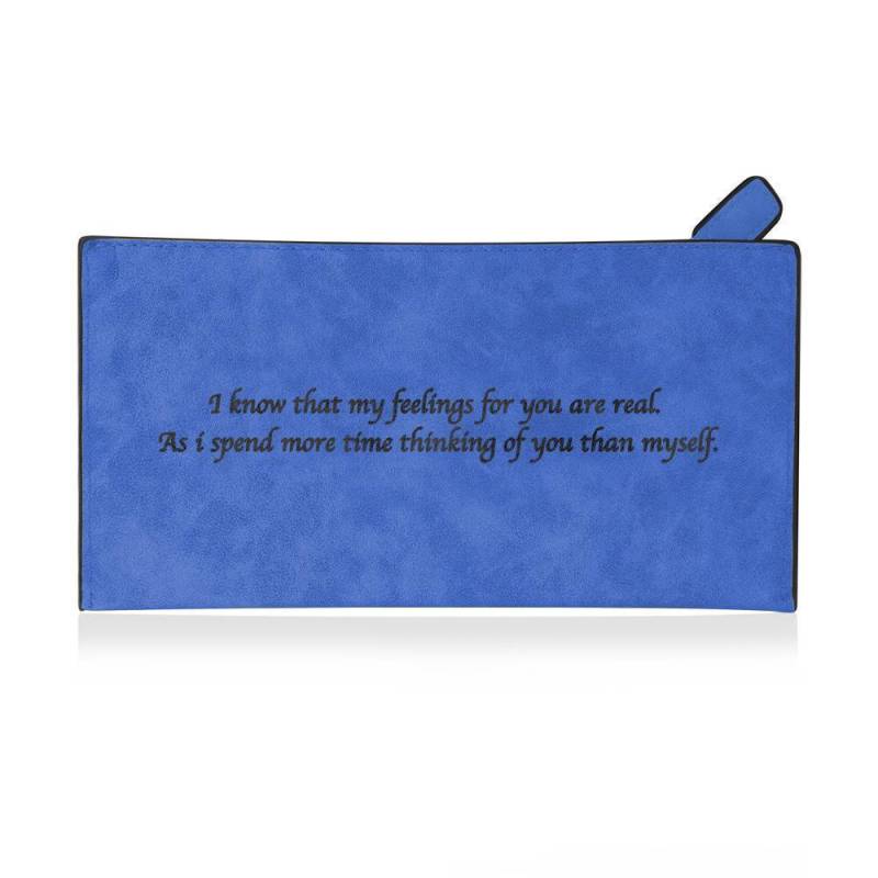Women's Custom Inscription Photo Engraved Zipper Wallet - Blue Leather