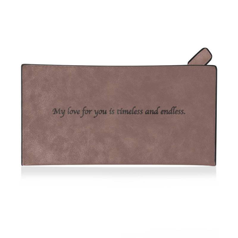 Women's Custom Inscription Photo Engraved Zipper Wallet - Brown Leather
