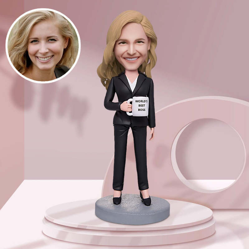 Business Gift World's Best Boss Business Woman Holding A Water Glass Custom Bobbleheads With Engraved Text